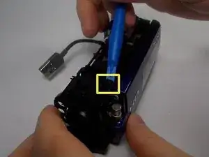 Используйте пластиковый инструмент для вскрытия, чтобы ослабить пластиковый корпус видеокамеры.