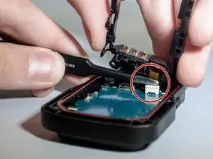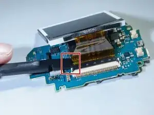 Освободите шлейф, соединяющий материнскую плату и экран, приподняв черную язычок, который удерживает шлейф, с помощью лопатки. (Смотрите изображения)
