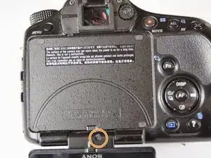 Открутите винт Phillips #00 размером 5.0 мм на нижней правой стороне камеры.