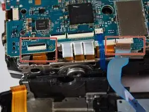 Используйте пинцет, чтобы отключить последние два разъема и полностью удалить печатную плату из камеры.