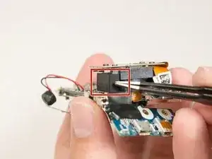 Снимите два винта Phillips #000 длиной 3,1 мм, закрепляющие материнскую плату на шасси.