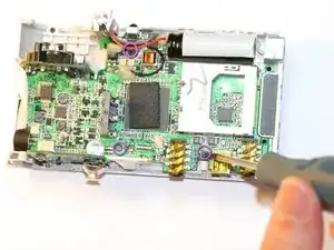 Используйте отвертку Phillips #00, чтобы выкрутить шесть машинных винтов длиной 0,5 см (расположены по периметру корпуса камеры).