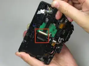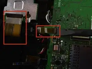 Эти фотографии сделаны после освобождения ленточных разъёмов и разделения корпуса на две части. Вам нужно освободить ленточные разъёмы, пока камера всё ещё собрана, прежде чем разделять её как на фотографиях.