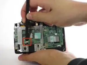 Используйте шпатель, чтобы разблокировать два ленточных разъёма.