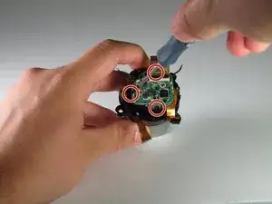Используйте крестовую отвертку Phillips #00, чтобы вынуть один 4 мм винт, расположенный непосредственно справа от видоискателя на задней части корпуса.