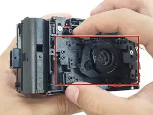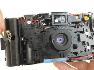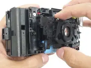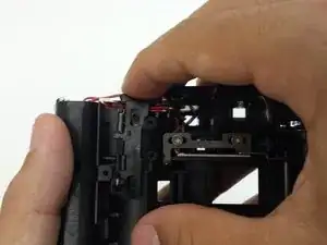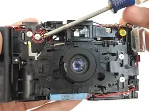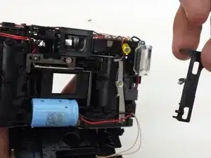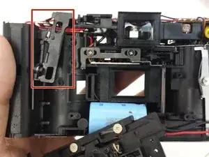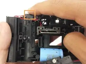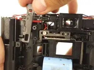 Аккуратно поднимите механизм кнопок, снимая пружину в верхней части механизма с места её крепления к корпусу камеры.
