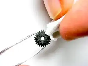 Очистите коробку с шестерёнками и шестерёнки с водой и тканью или бумажным полотенцем. Игла может быть полезна для удаления грязи или мусора, застрявшего между зубьями шестерёнок.