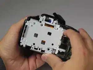 В этом руководстве будет показано, как удалить металлическую пластину, которая ведет внутрь камеры. Это предоставит доступ к объективу и материнской плате.