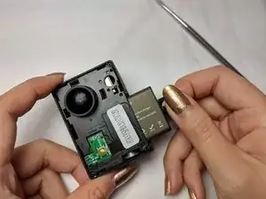 После удаления передней панели убедитесь, что аккумулятор также извлечен из картриджа камеры, чтобы продолжить.