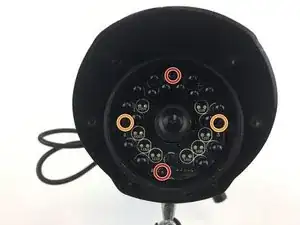 Удалите шесть винтов Torx T10 длиной 10 мм на передней панели камеры.