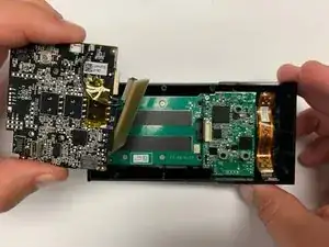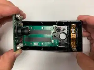 Удалите один серебристый винт Phillips #00 длиной 10 мм, фиксирующий плату камеры в устройстве.