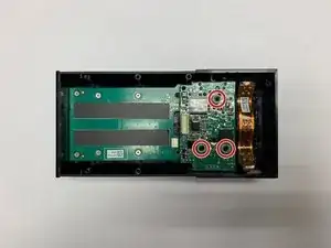 Удалите три серебристых винта Phillips #00 длиной 6 мм, фиксирующих материнскую плату в корпусе устройства.