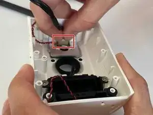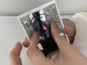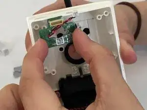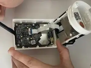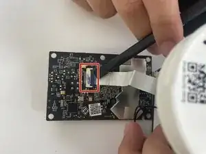 Отогните плату вниз от корпуса камеры, чтобы открыть белую соединительную шлейф.