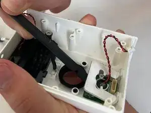 Подденьте лопаткой металлический элемент и снимите его с корпуса камеры.