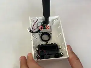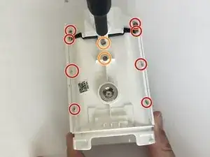 Выверните белый винт 6 мм на задней панели при помощи отвертки Torx T3.