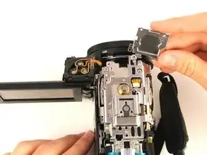 Снимите панель непосредственно справа от отсека аккумулятора с камеры.