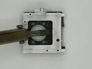 С помощью инструмента для открытия iFixit аккуратно приподните нижнюю панель, чтобы получить доступ к внутренностям камеры.