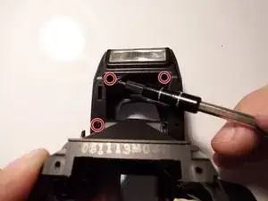 Используйте отвертку JIS #000, чтобы удалить три винта 3 мм на крышке вспышки.