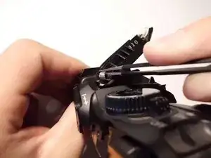 Удалите два винта M3x5 мм JIS #000 на стороне камеры, противоположной рукоятке.