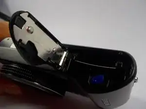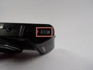 Переверните камеру и с помощью пластикового инструмента для вскрытия (или банковской карты, медиатора) отожмите заднюю крышку корпуса. Сторона с экраном должна теперь соответствовать второй фотографии.
