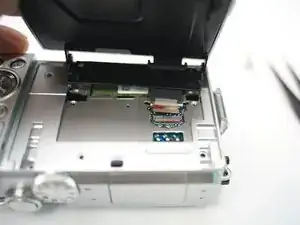 Откройте пластиковую крышку разъёма ЖК-дисплея