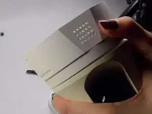 Нажимая на защёлки, поднимите верхнюю чёрную часть корпуса руками.