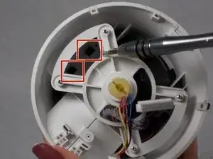 Отверткой Phillips #1 выкрутите два винта 6 мм, удерживающих мотор на месте.