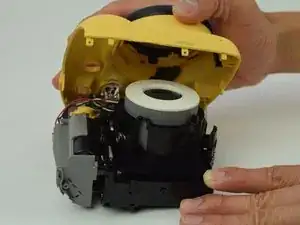 С помощью пинцета отсоедините пружину от корпуса. Пружина втянется в чёрное и серое кольцо на передней панели.
