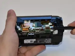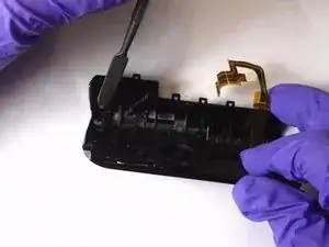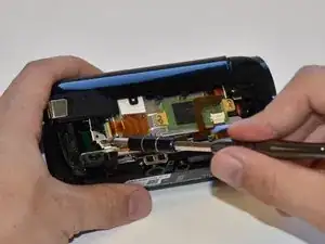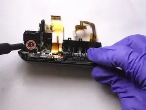 Удалите один винт Phillips #000 длиной 3 мм, удерживающий навигационную кнопку. Затем с помощью металлической лопатки отделите кнопку от корпуса.