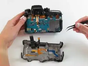 Используйте пинцет, чтобы вытащить два ленточных кабеля горизонтально из их разъёмов.