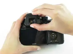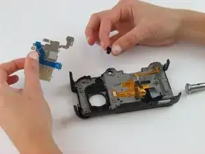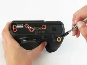 Используйте отвёртку Phillips #00, чтобы выкрутить два винта длиной 5,5 мм с правой стороны камеры, над портом карты SD.
