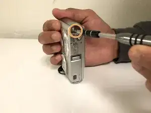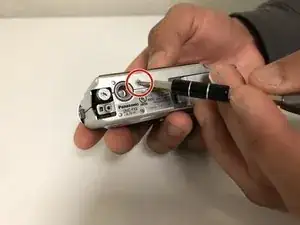 Удалите винт, расположенный в нижней правой части камеры, и снимите крышку с камеры.