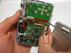Не рвите ленточный кабель и не тяните красный и чёрный провода питания при извлечении ЖК-экрана.