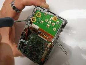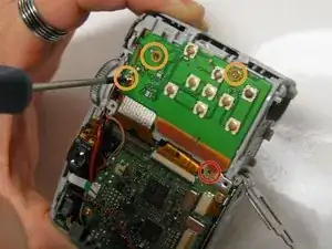Снимите следующие три винта Phillips 3.5 мм на плате кнопок, используя крестовую отвёртку Phillips #00.