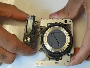 Если первоначальная попытка сдвинуть кнопку спуска не удалась, придётся разобрать камеру.