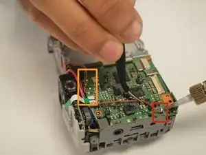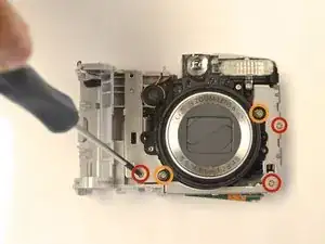 Используйте крестовую отвёртку Phillips #00, чтобы выкрутить шесть винтов Phillips длиной 4 мм, расположенных по бокам и внизу камеры.