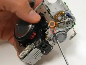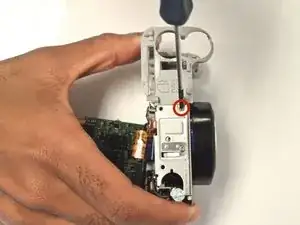 Далее используйте крестовую отвёртку Phillips #00, чтобы выкрутить самый внутренний винт Phillips длиной 4 мм. Это снимет крышку с камеры.