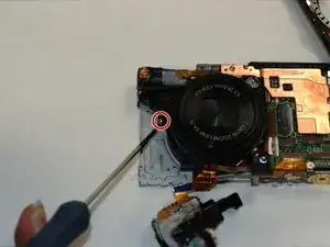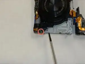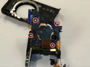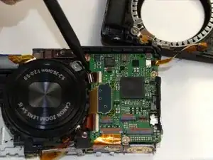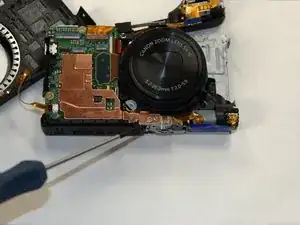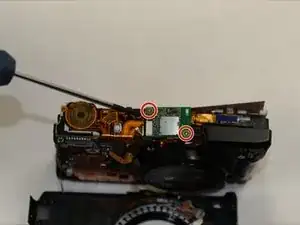 С помощью крестовой отвёртки снимите винты с маленькой печатной платы в верхней части камеры.