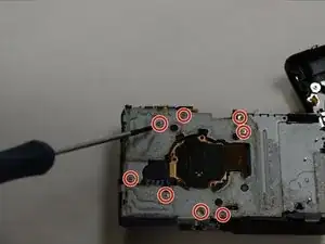 С помощью крестовой отвёртки снимите 8 винтов, прикрепляющих металлическую панель к камере.