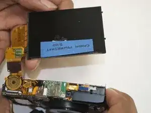 Дисплей теперь должен быть частично отсоединён от задней части камеры.
