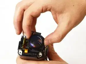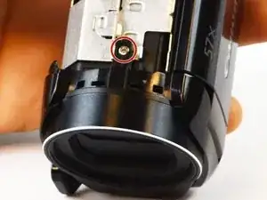 С лицевой стороны камеры найдите и удалите три винта Phillips #00 длиной 5 мм, фиксирующие объектив.