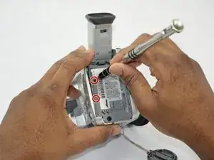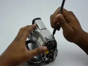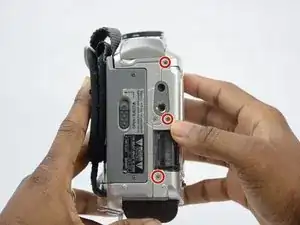 Удалите винты 3.75 мм на задней части видеокамеры, которые удерживают боковую панель.