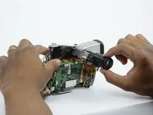 Объектив видеокамеры Canon ZR70MC — самый сложный компонент для замены. В этом руководстве много шагов, поэтому выделите достаточно времени для выполнения замены. Также имеется множество мелких деталей, поэтому подготовьте отдельное место для хранения снятых деталей. Это руководство покажет, как получить доступ к объективу видеокамеры и заменить его. Не повреждайте плёнки и провода, которые встретите в процессе.
