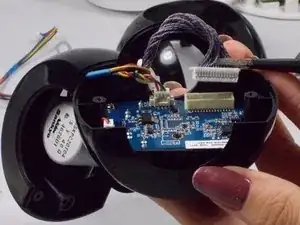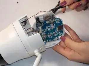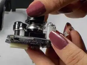 Отделите черный кожух камеры от верхней части, осторожно освобождая защелки с помощью пластикового инструмента для открытия или лопатки.