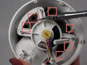 Используйте отвертку Phillips #1, чтобы открутить четыре винта длиной 5 мм с обеих сторон черного корпуса камеры, чтобы отделить его от белой части.