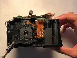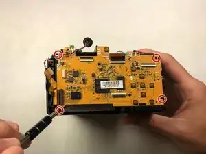 Удалите винты 4 мм на металлической пластине. Затем удалите винты 4 мм на левой стороне камеры и два винта 4 мм на правой стороне.