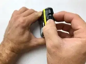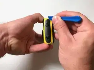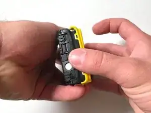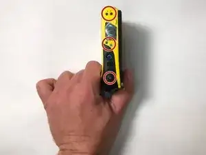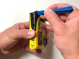 Используйте пластиковую раздвижную лопатку, чтобы осторожно полностью отделить желтую переднюю панель от камеры.