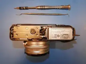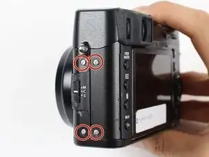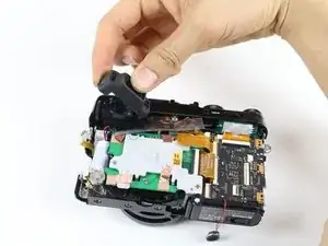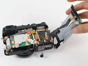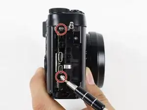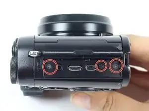 Чтобы получить доступ к внутренностям камеры, сначала необходимо снять узел крышки порта на правой стороне. После его снятия у вас появится доступ к винтам, крепящим другие компоненты.
