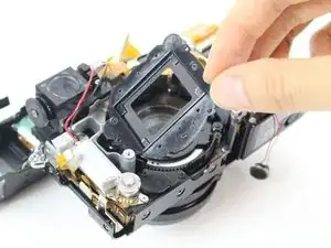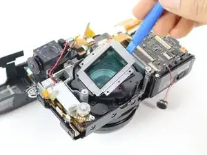 После извлечения блока сенсора вы должны увидеть серебристую крышку объектива под ним.