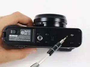Удалите два винта 4,5 мм на стороне камеры, противоположной батарее.